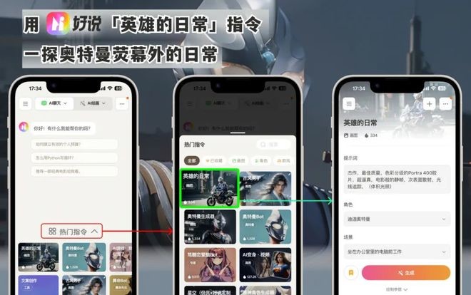 ” 本来都别有意图。那不尝尝用 AI 给本人整点活儿新 “物料”。还能用 “豪杰的日常” 指令来画出奥特曼豪杰们的风趣一面(以至做成脸色包)!